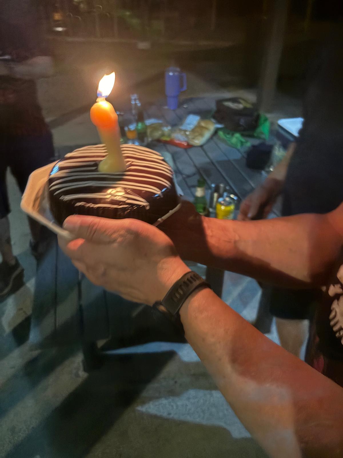 In the circle the usual spiteful and vindictive charges were laid followed by the raffle which in surprising twist was won by the birthday boy. Derro was delighted with his anal cushion as apparently; he has a bad case of Haemorrhoids at the moment followed by a moving rendition of Hashi-birthday. The homemade birthday fudge cake was a real winner until the hare thought the penis shaped candle was a butt plug resulting in stinky fudge which seemed to arouse Eno F&ck All.