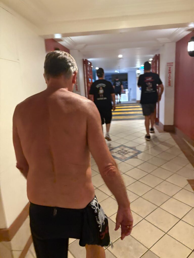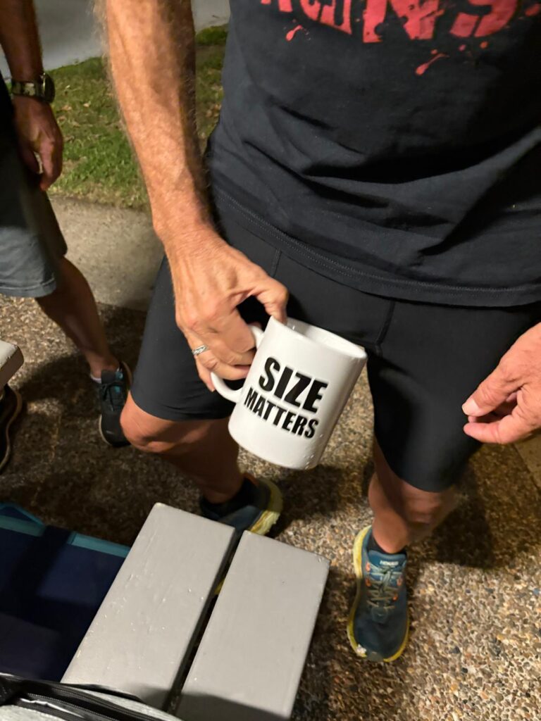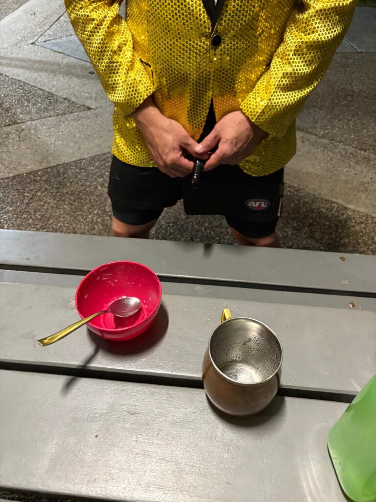 In the circle we all agreed Ballbags was way too quick in cracking all the checks, but it sounded like he did the whole trail, even nipping into the massage parlour for a quick rub & tug (claimed he was only following the arrow) and catching a show at the Pink Flamingo. To be fair even the cops tried to slow him down, mistaking him for the notorious nursing home escapee “Kevin” but when questioned Ballbag’s was able to provide a visual demonstration of how he earned his hash name which seemed to be all the ID the crack team from CSI Broadbeach could handle.