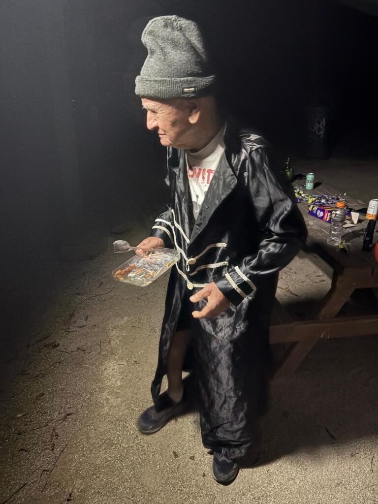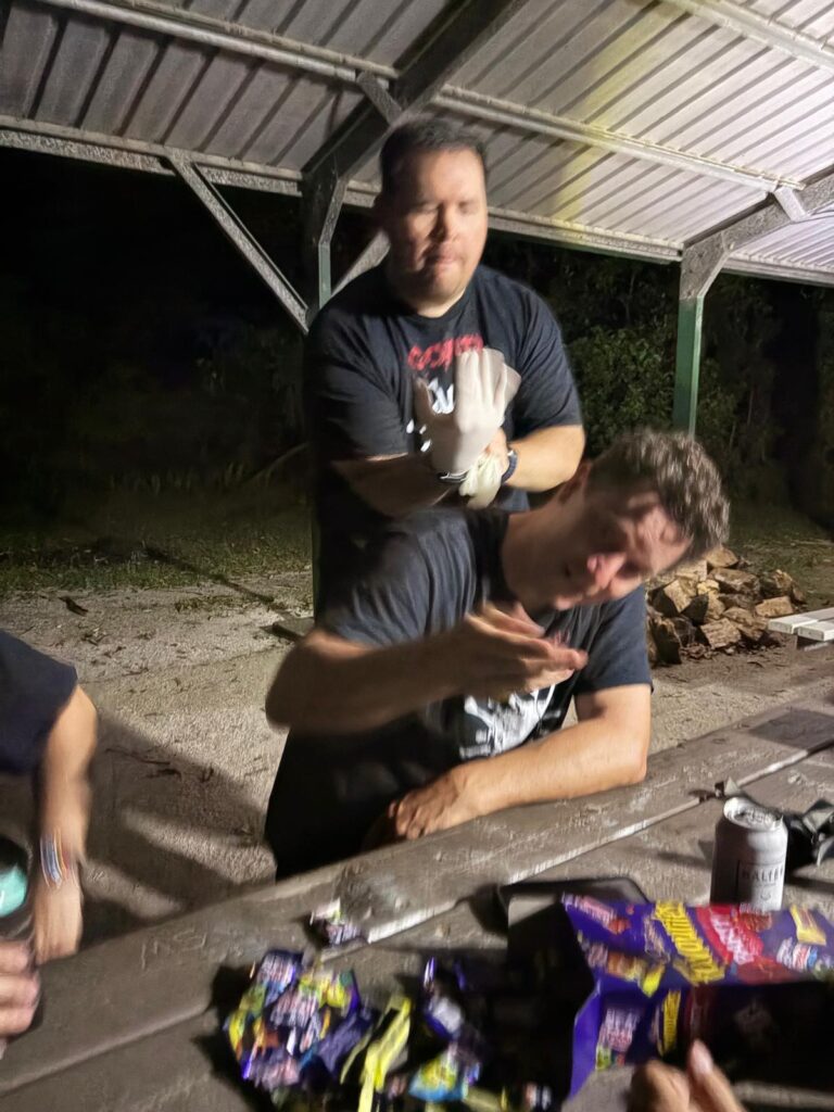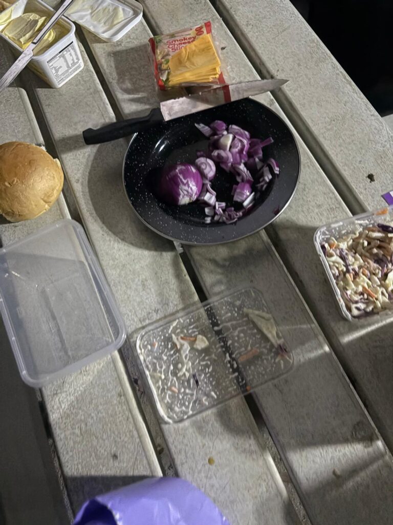 In the circle that followed the feast, Miscarriage was overjoyed by all the wildlife the hare (Tommy Two Stroke) had organised on trail and was going to give the run a 7.5 but discounted it by 0.6 because no snake bite treatment was required nor administered. Ballbags gave the walk a 6.9 and then shocked the kennel stating “tech” was the future and that we should immediately abandon antiquated methods of trail setting stating “flour, paper & chalk” has had a fair go and we should “get onboard” with digital coz it keeps the pack together (everyone’s too scared shitless to fall behind) and that trail markings are super over rated anyway (probably explains his love for going “off-piste”).